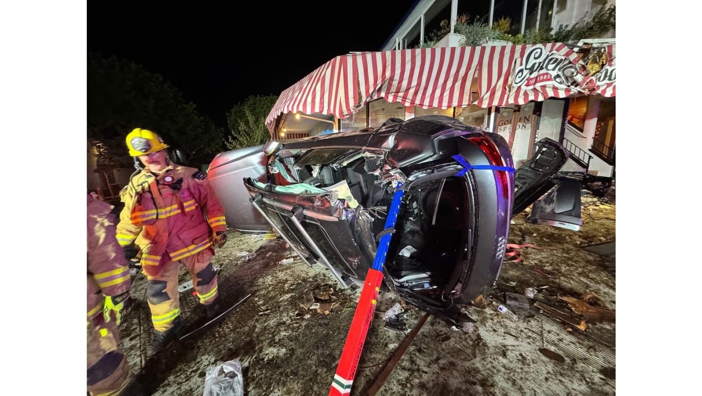 At around 1:20 a.m., crews responded to a collision at MacArthur Boulevard and East Coast Highway. The car, traveling south on MacArthur, appeared to have cut the turn and struck the center divider, according to the Newport Beach Fire Department.
