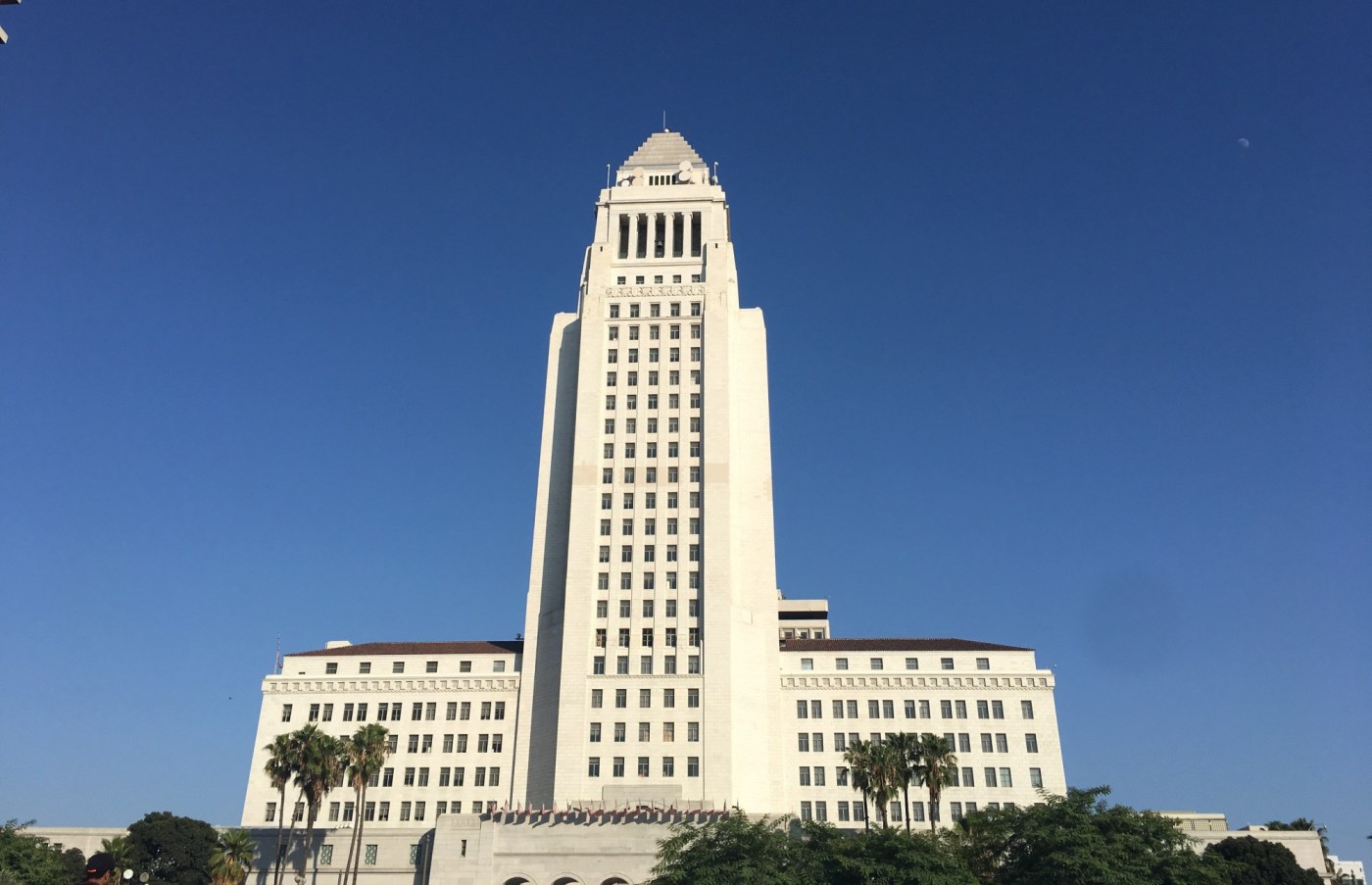 At 4:08 p.m., the LA Police Department responded to a traffic collision call and found the car on the steps of City Hall near Broadway and south of First Street in downtown LA.