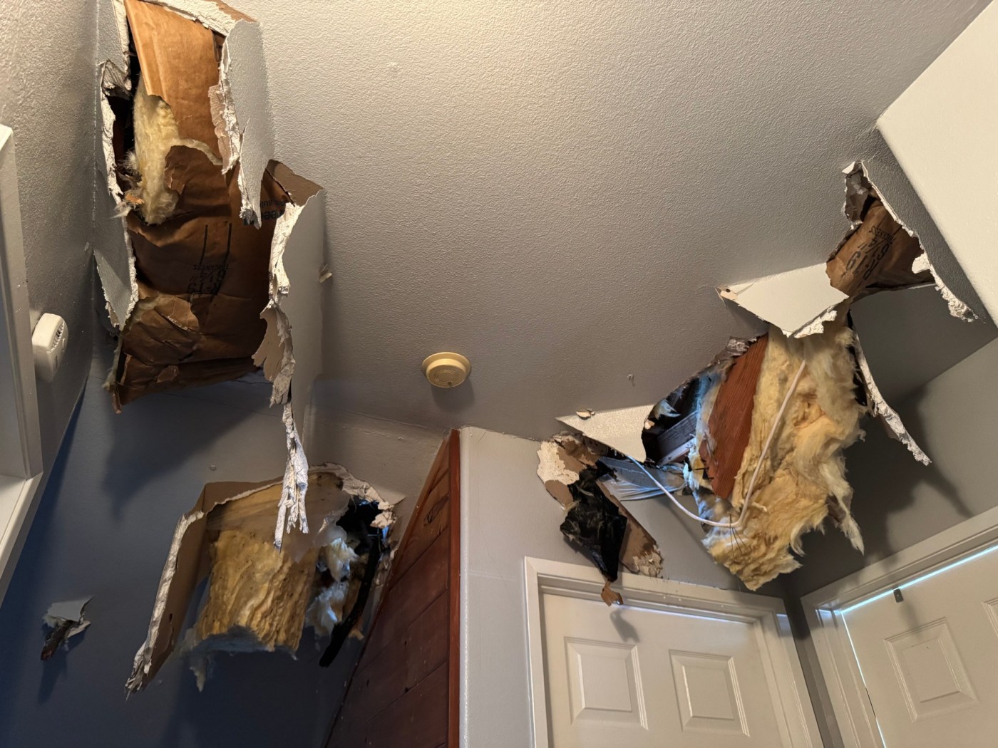 “Unfortunately, during the recent storm, we had a tree fall into our home,” they wrote. “Luckily, the youngest was not home, and the two oldest have moved out. We recently just took on two cats that we call our girls, and they were in the room that took on the most damage. So very thankful nobody was injured, including all the fur babies: 2 dogs, 4 cats, and freshwater fishes.”