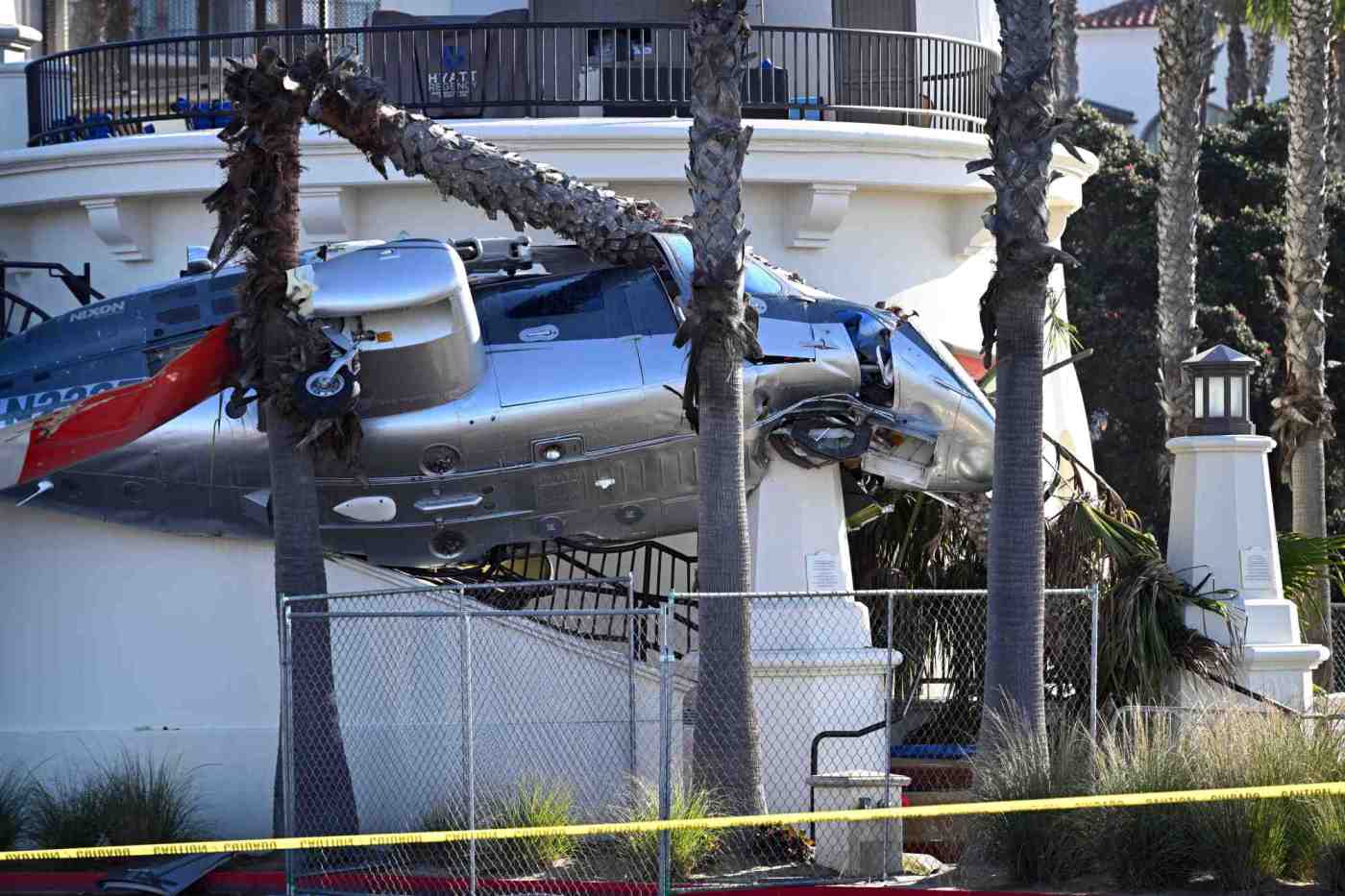 The videos, many taken by bystanders at the beach, showed the helicopter spinning until it wound up lodged in palm trees near a hotel where the Waterfront Beach Resort and Hyatt Regency Huntington Beach Resort and Spa are located.