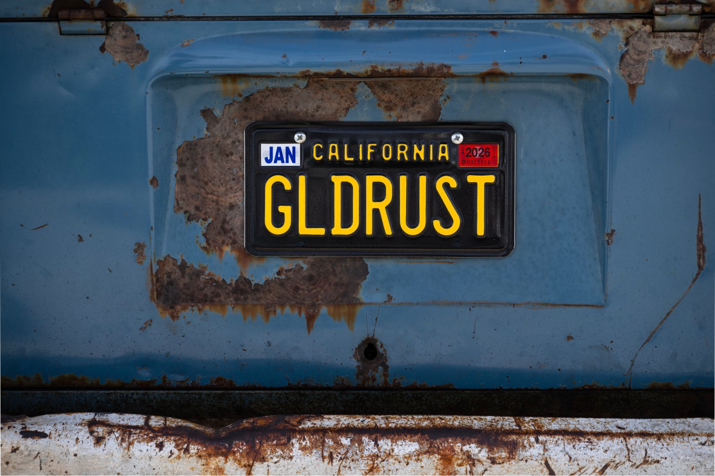 A: Paul sent over the photo, and the plate looks real, except it is missing the registration tags.