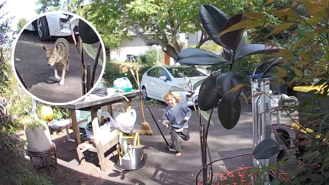 Surveillance footage captured a coyote following a 3-year-old boy toward his home in Pasadena earlier this week.