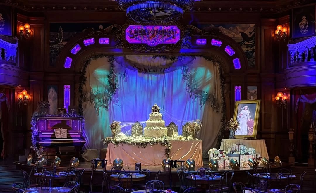 A new Halloween-themed dining experience in a Frontierland saloon tied to the Phantom Manor at Disneyland Paris leans into a backstory of a bride whose husband mysteriously disappears on her wedding night.