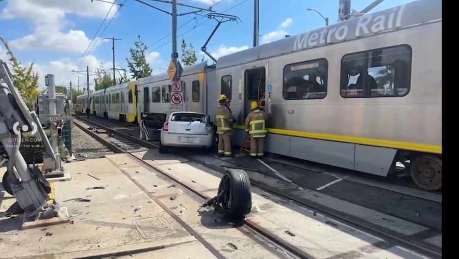 2 hospitalized after Metro train and SUV collide in West Adams