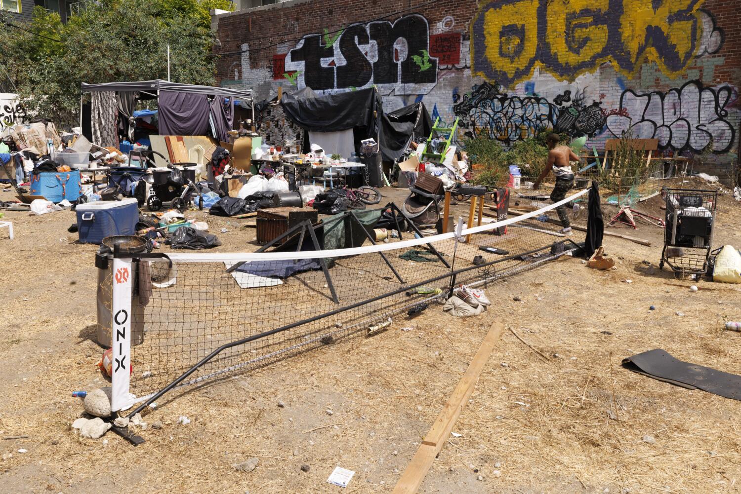 A Koreatown homeless encampment, with pickleball court and garden, is removed following complaints