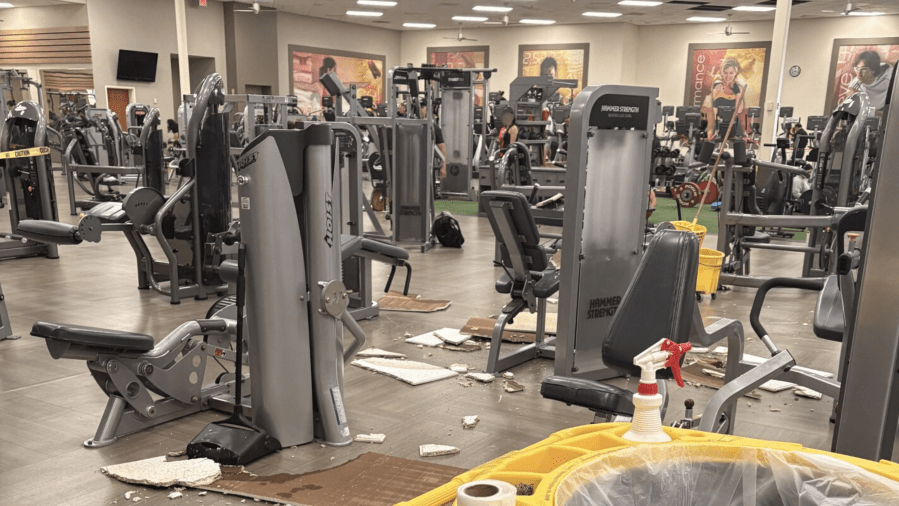 Ceiling tiles fall, water pools at popular Riverside gym as storm hits