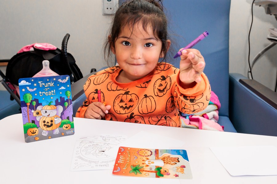 The cards will be printed and hand-delivered to patients during the hospital’s annual Pumpkin Party, where kids will also receive goody bags and take part in crafts and pumpkin decorating.