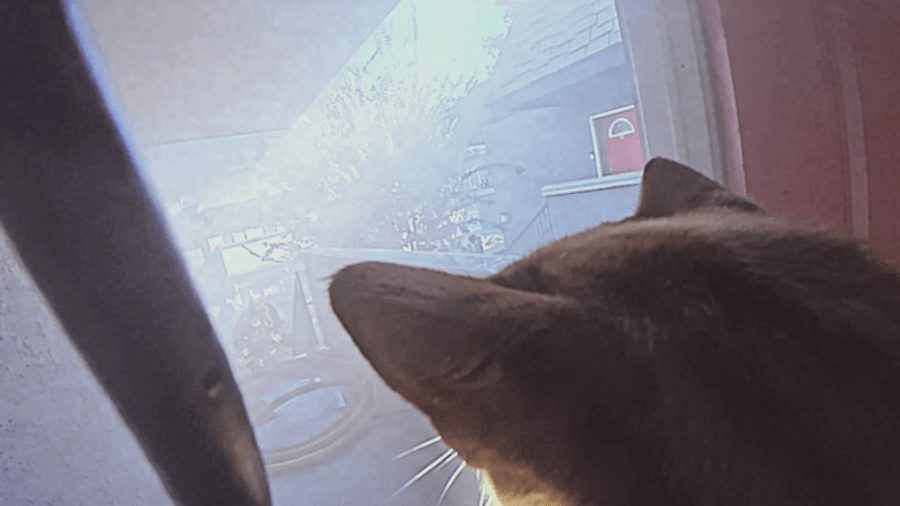 Inside, firefighters found two cats, one orange, the other black, and safely removed them from the smoke-filled apartment as they meowed in confusion.