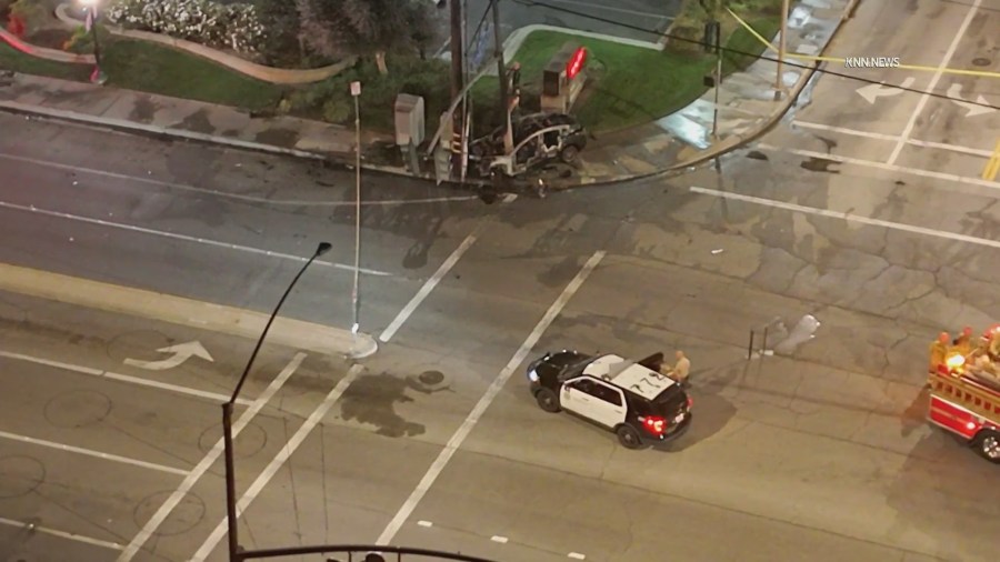 According to the Los Angeles County Sheriff’s Department, the crash was reported at 2:14 a.m. Saturday at the intersection of Cinema Drive and Bouquet Canyon Road, not far from the Valencia Mart Shopping Center.