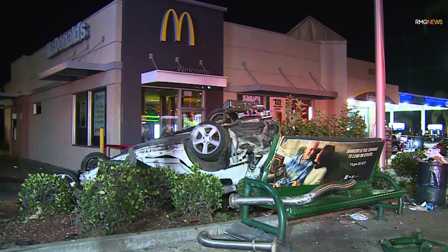 Speeding car crashes through bus stop, flips into California McDonald’s drive-thru