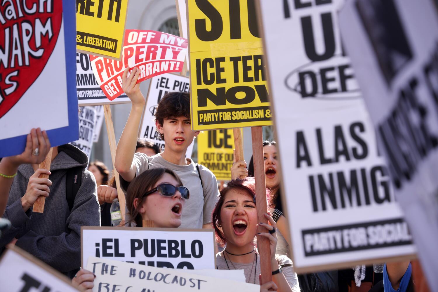 Middle and high schoolers walked out of classrooms across L.A., Long Beach and Pasadena districts to protest the Trump administration’s ICE crackdowns. UCLA, USC, Cal State and other college campuses also held protests.