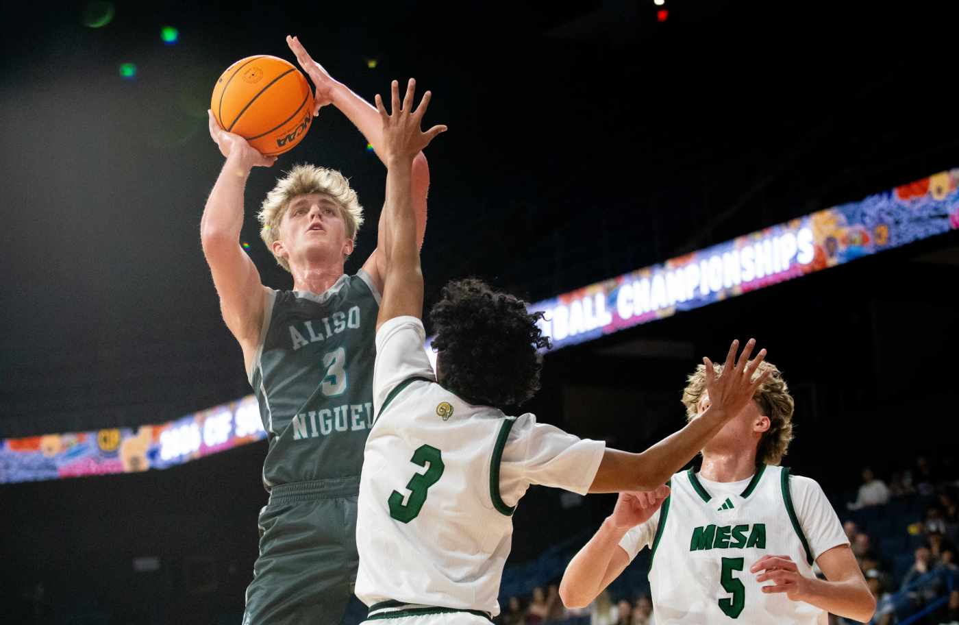 A variety of Murrieta Mesa players made shots at crucial times as Aliso Niguel lost, 65-58, to the Rams in the CIF Southern Section Division 3 boys basketball championship game Saturday at Toyota Arena.