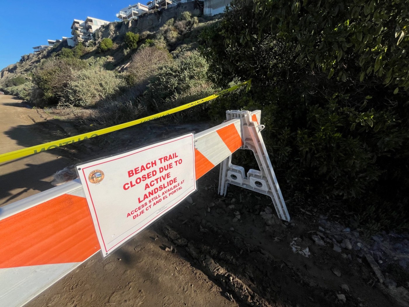 The slope movement did not impact homes along the coastal stretch, but enough of the slope slipped for city officials to close the section of beach trail from the North Beach parking lot to Dije Court beach accesses.