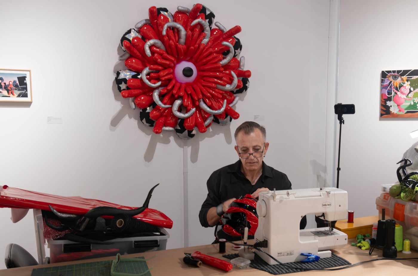 Southern California artist Alex Gano invited visitors into his creative process over the weekend, sharing how he turns fabrics and textiles into his art pieces.