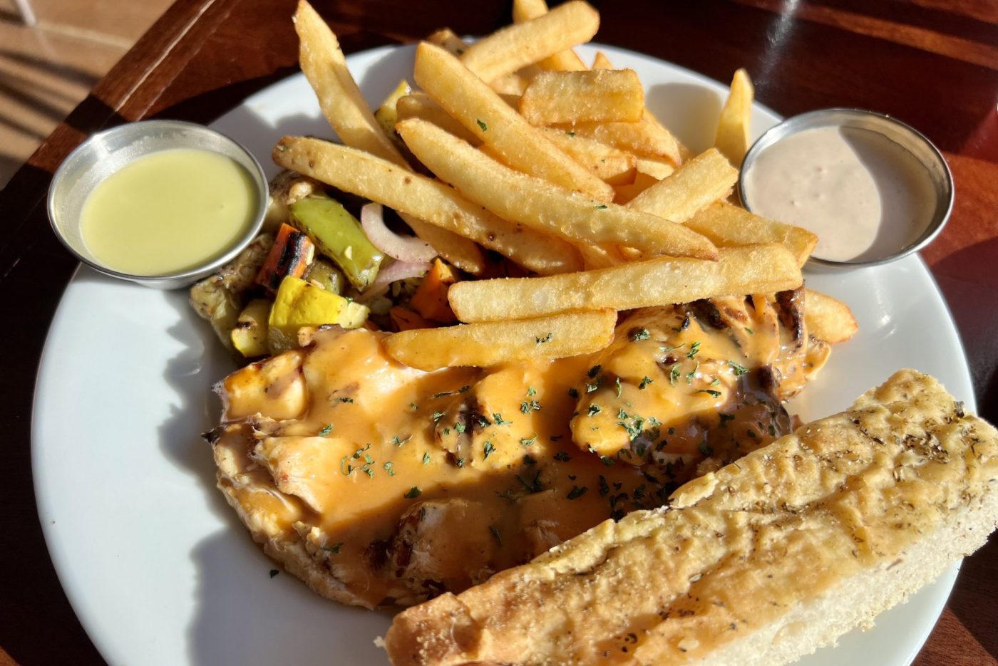 Sides include grilled veggies, fries, roasted cauliflower and brown or jasmine rice.