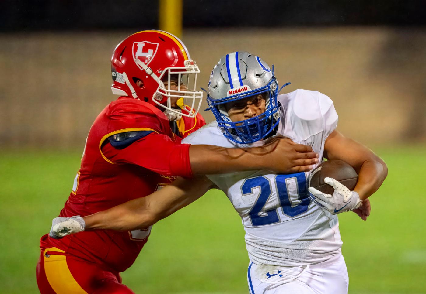 gains yardage against Loara in a nonleague football game in Anaheim on Thursday, September 25, 2025. (Photo by Paul Rodriguez, Contributing Photographer)