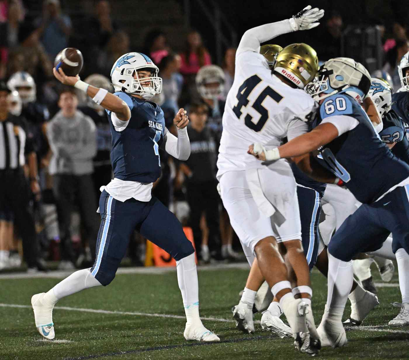 Hettig calls the Sea Kings’ defensive line “the nameless guys” who have produced. The group features Zeno-Herrera, who recorded a safety against San Juan Hills.