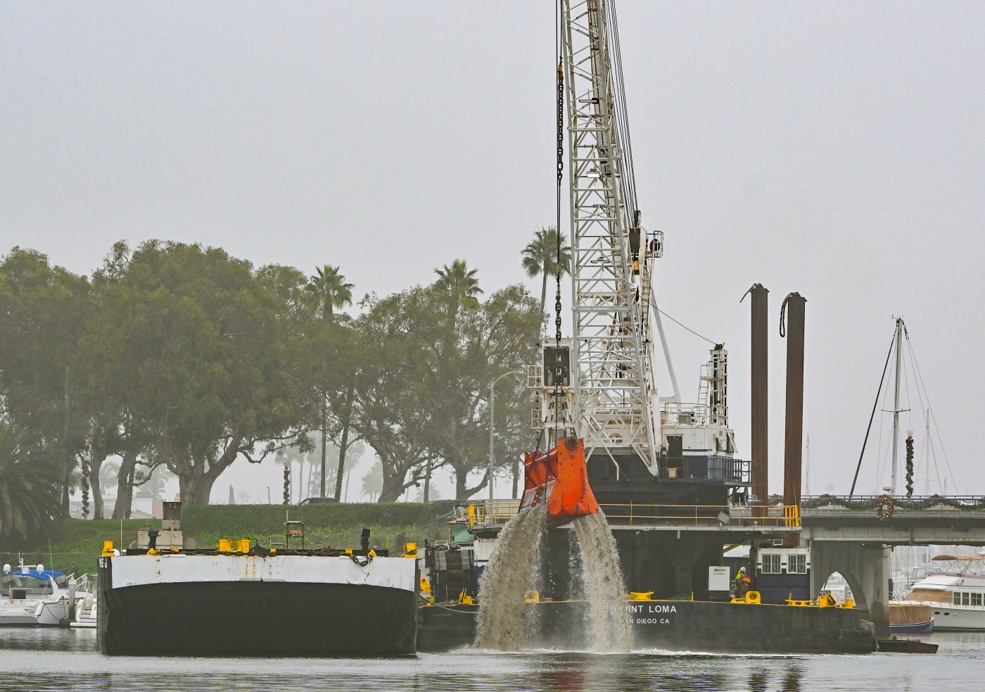 The dredging will not impact the Newport Beach Christmas Boat Parade from Dec. 17 through Dec. 21, officials said. During the parade, the contractor will stop dredging at 4 p.m. and will relocate the dredge barge and equipment to one of the staging areas.