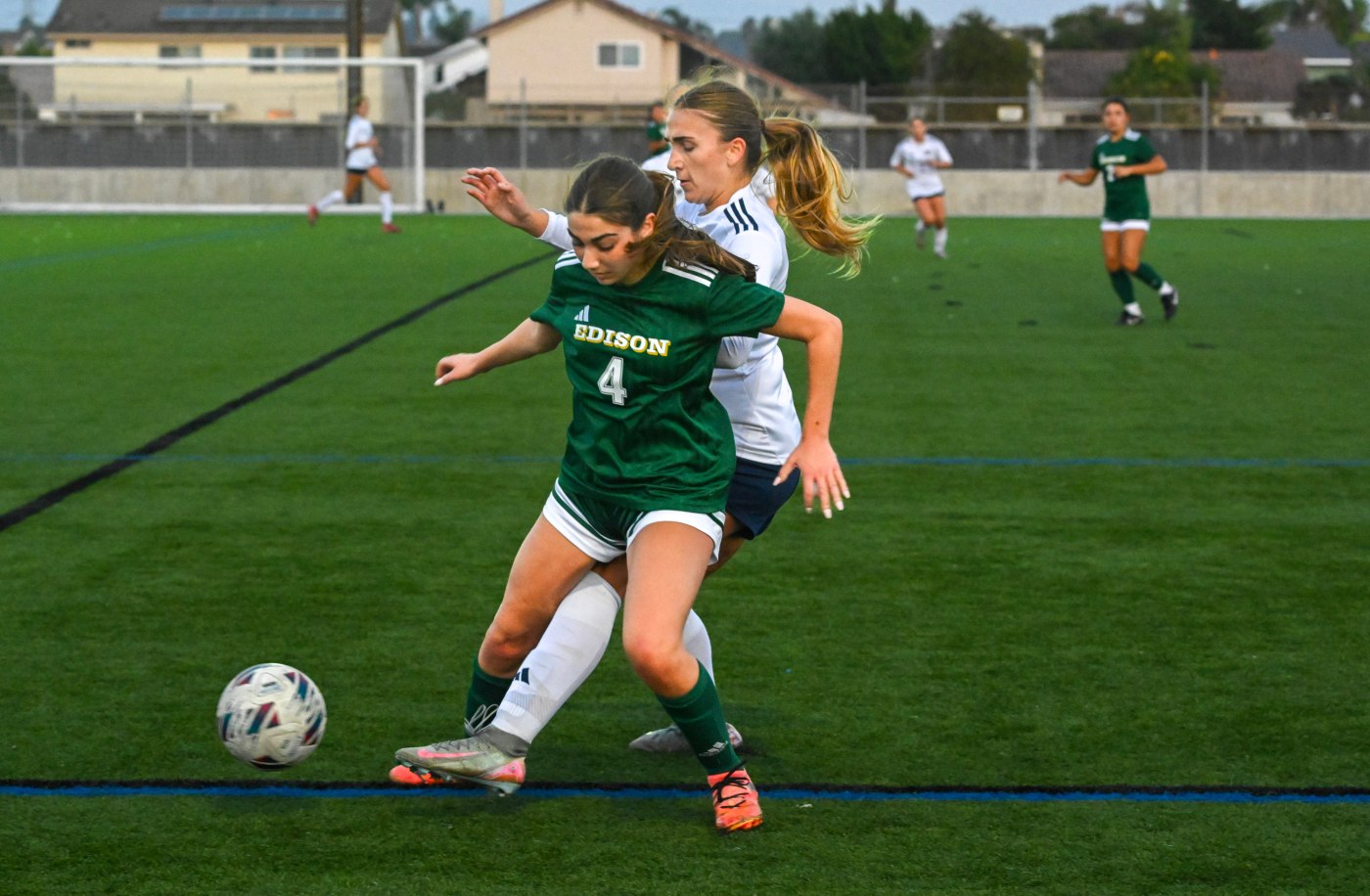 HUNTINGTON BEACH — Edison’s girls soccer team was four minutes away from losing in the semifinals of the Sunset League tournament on Monday.