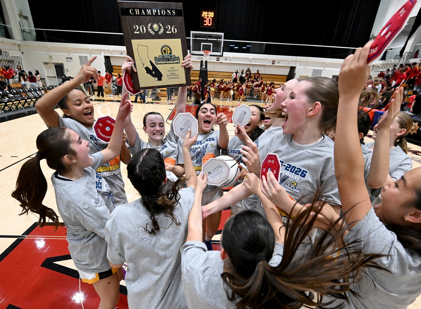 El Dorado celebrates after defeating La Canada in the CIF-SS Division 4 girls basketball final on Feb. 27, 2026 in Azusa, CA. (Photo by John McCoy, Contributing Photographer)