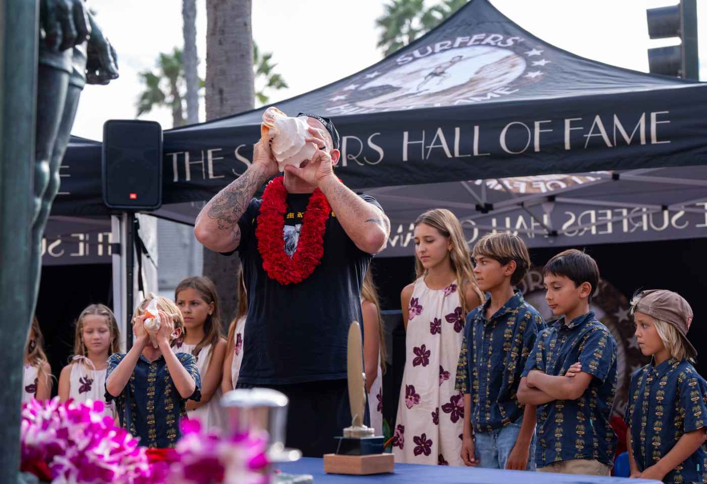 “I am Kolby! I am Kolby!” the crowd let out loudly, a mantra that has reverberated throughout Surf City in recent weeks since the death of the beloved young surfer. A bronze plaque honoring Aipa into the Surfers’ Hall of Fame was added during an emotional ceremony on Thursday, Sept. 19, next to grandfather Ben Aipa’s cement stone from 2018 honoring the iconic Hawaiian board shaper.