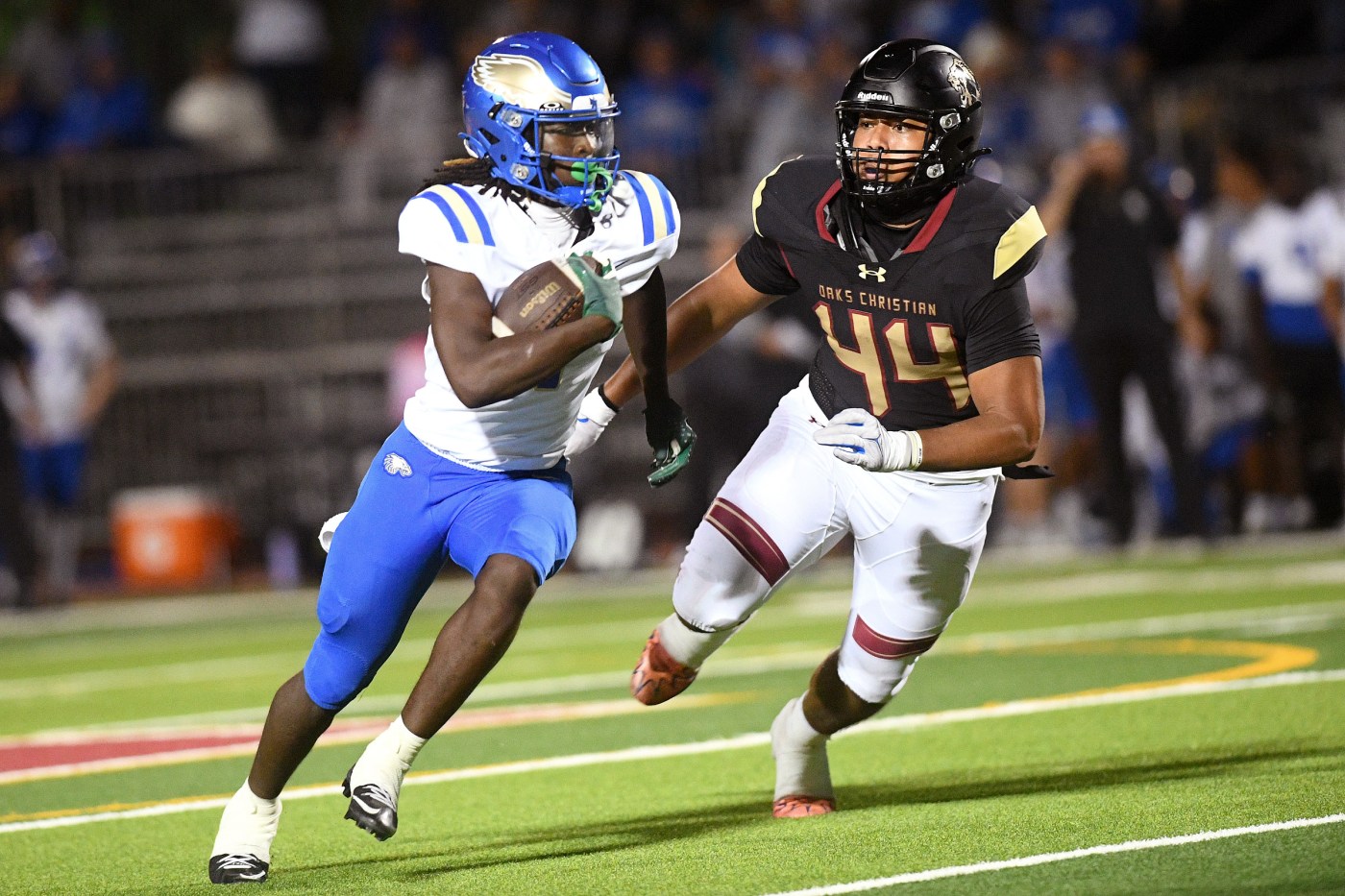 Analysis: The MaxPreps.com national rankings have Bishop Gorman of Las Vegas at No. 7 and Santa Margarita at No. 9. The HSratings.com national rankings put Bishop Gorman at No. 5 and Santa Margarita at No. 9. Santa Margarita has won three in a row since a season-opening 7-3 loss to Mission Viejo. That victory streak includes a 33-27 overtime win over Corona Centennial which beat Mater Dei a couple of weeks later. Santa Margarita got that win, and subsequent wins over Highland 45-13 and Oaks Christian 44-14, without star receiver Trent Mosley, who has been out with a foot or ankle injury of some kind. The Eagles offense has been very productive without him, but he is the best offensive player on their roster. His brother, sophomore receiver Grant Mosley, has been terrific this season. He had seven receptions for 92 yards and a touchdown against Oaks Christian two weeks ago. Sophomore running back Jaion Smith rushed for 122 yards and three touchdowns on 18 carries in that victory. So that side of the offense is good, too. Bishop Gorman lost at home to Mater Dei 27-24 last week. The Gaels were eaten up by Mater Dei’s passing game. Mater Dei’s Ryan Hopkins completed 15 of 18 passes for 251 yards and three touchdowns. Santa Margarita coach Carson Palmer isn’t disclosing Trent Mosley’s status for this game (if I’m Coach Palmer I’m not volunteering that information). Bishop Gorman has a fine passing attack, led by senior quarterback Maika Eugenio, who threw for 295 yards and two touchdowns against Mater Dei. This one is going to be a high-scoring and entertaining shootout, with Bishop Gorman taking a late lead and hanging on in a close game.