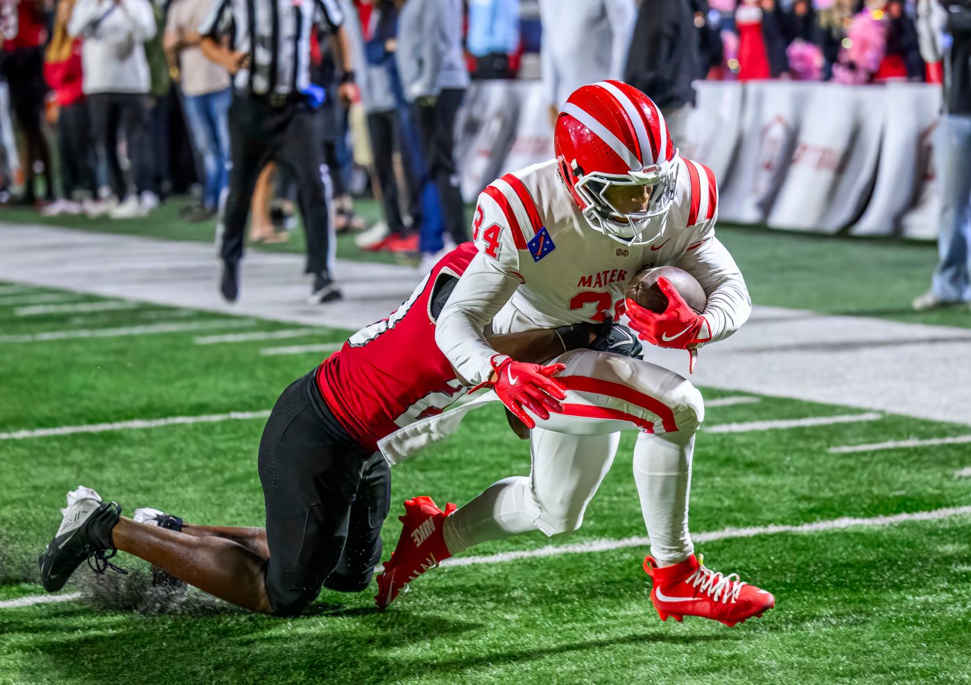 Analysis: Most Santa Margarita-Mater Dei games are high-scoring games. Mater Dei beat Santa Margarita in their Trinity League game last year 40-18. The Monarchs have averaged 46 points a game against the Eagles this decade. Yet this Santa Margarita-Mater Dei game might be a low-scoring one, perhaps with a score similar to the last time Santa Margarita beat Mater Dei in a varsity football game – 17-7 in 2010. Mater Dei scored only seven points in the first half last week against Orange Lutheran and clung to a 10-3 lead going into the fourth quarter before pulling away for a 25-10 win. Monarchs junior linebacker Dailon Clanton had a team-high 10 tackles. Santa Margarita relied on its defense to get last week’s 17-7 league win over Servite. Eagles senior safety Logan Hirou, a UCLA commit, had a team-high 12 tackles. Eagles senior receiver Trent Mosley, who is committed to USC, has missed several games because of a foot injury, and did not play against Servite last week. Mosley, who is a threat to make a big play on any snap, might return to action for this one. Mater Dei receiver Chris Henry, an Ohio State commit, missed some of the Orange Lutheran game because of injury. This one is going to be won by defense. As good as Santa Margarita’s defense is, Mater Dei’s defense should have the most success against the opposition offense.