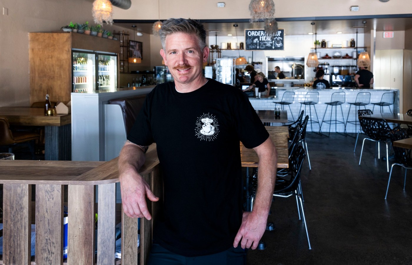 While the second Pacific Pearl Cafe prepares to open in Costa Mesa (slated for Monday, Jan. 26 at The Met at 575 Anton Blvd.) near a new private pickle ball court, Campbell, now 45 years of age, is keeping his center of gravity in Dana Point. On any given afternoon, you might find his surfboard propped against the cafe wall. (Small wonder as Campbell is a longtime advocate for sustainability and accessibility in the food system, as well as a co-founder of Portland’s Sustainable Seafood Summit). He takes to the waves when the swell is right, a hobby that can be seen in the decor — and vibe — of the White Rooster.