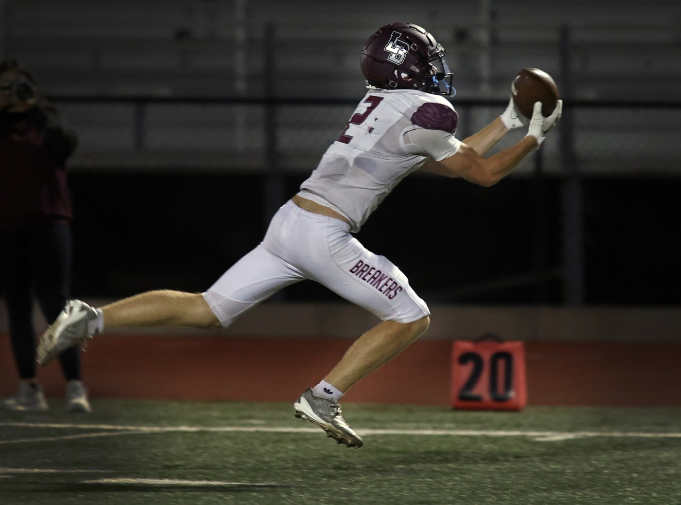 A holding penalty on the Breakers’ second possession led to a fourth-and-13 at the El Dorado 21, but Hurst threaded a pass to Kimball in the end zone to make it 14-0 with 3:08 left in the opening quarter.