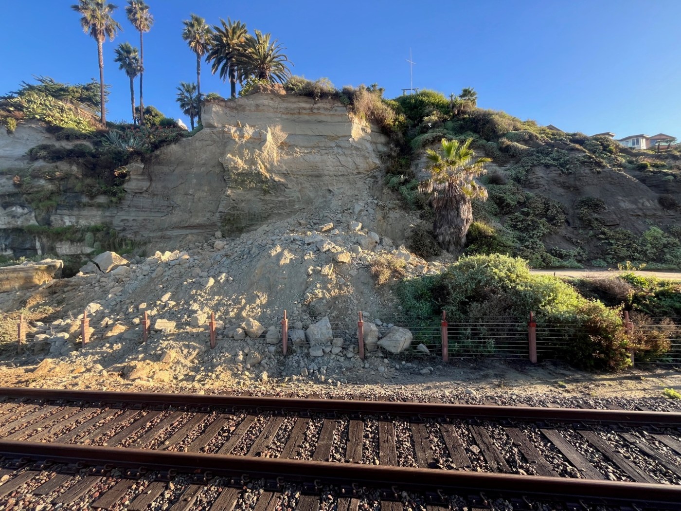 But there have been a series of landslides in the area in recent years, starting in 2021 following a big storm and strong surf that damaged the railroad track and homes on the south end of the town, following by several landslides north of the pier that have shut down the rail line on several occasions, damaged the city’s historic Casa Romantica and destroyed the popular Mariposa Bridge.