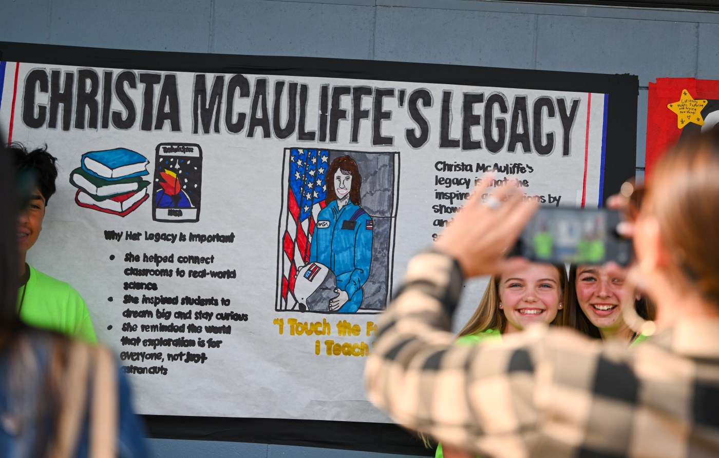 Eighth-grader Maddie Presciado helped organize the day’s events, saying McAuliffe is “very inspirational because she was an ordinary person, just like all of the people at school.”
