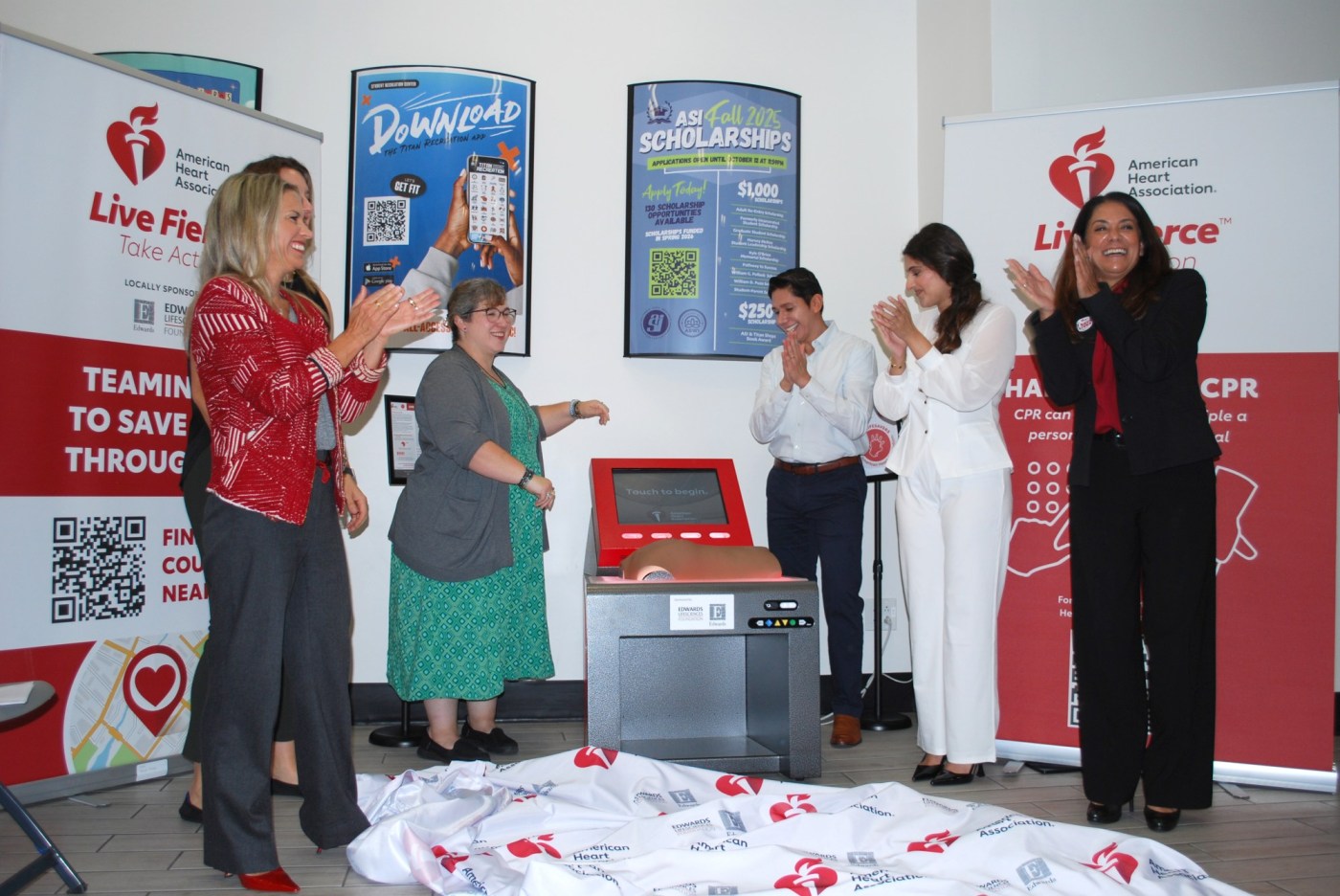 “This hands-on kiosk empowers our students and our community members to save lives,” said Vincint Vigil, dean of students and vice president of student affairs. “Just as our academic programs prepare students for the future and sustain them today, CPR training equips them to act in case of an emergency. So, thank you, Edwards Life Sciences, for gifting us the ability to save lives within Orange County, but also here at Cal State Fullerton.”