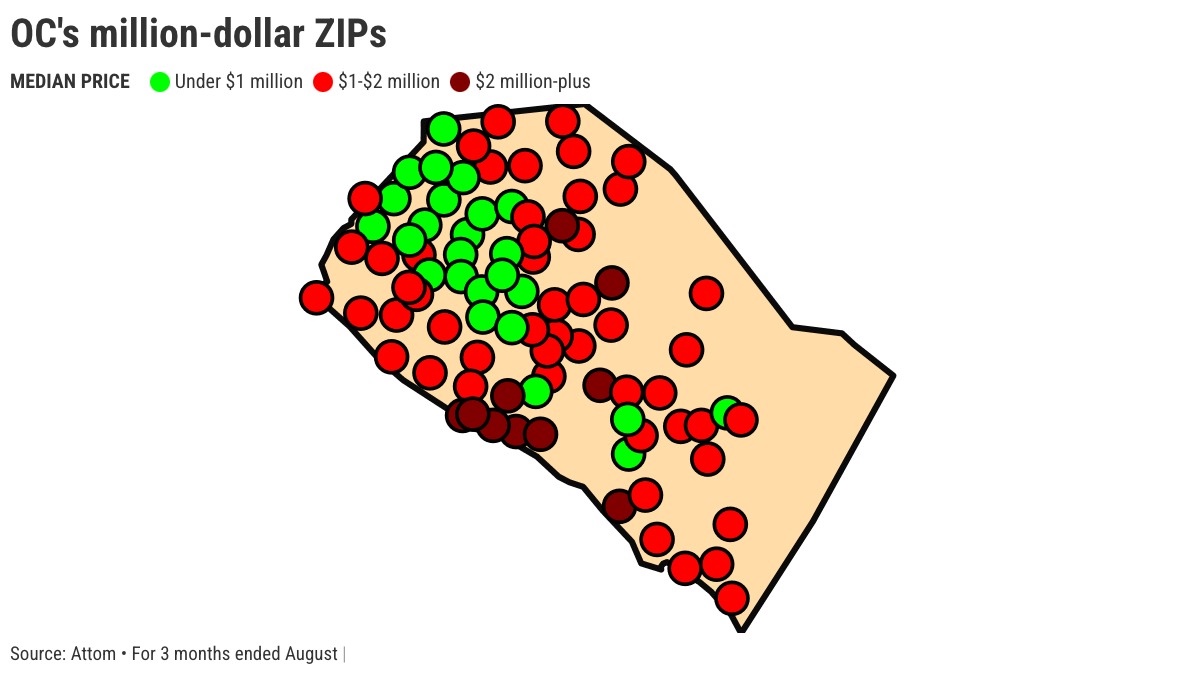 Orange County had 60 million-dollar ZIP codes in the three months ended in August – up two in a year.