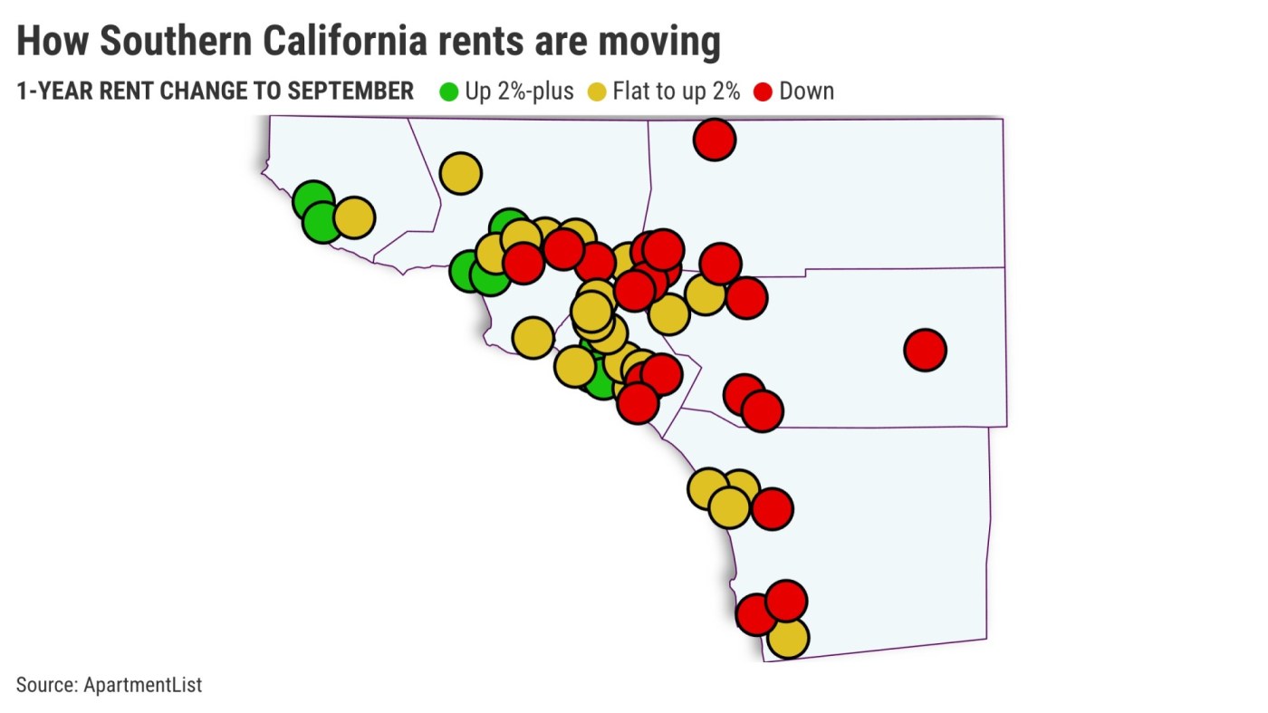 That’s what my trusty spreadsheet found when it reviewed the September rent data from ApartmentList, which tracks pricing in 14 cities in Orange County using an index of one-bedroom and two-bedroom units derived from government data and the company’s rental listings.