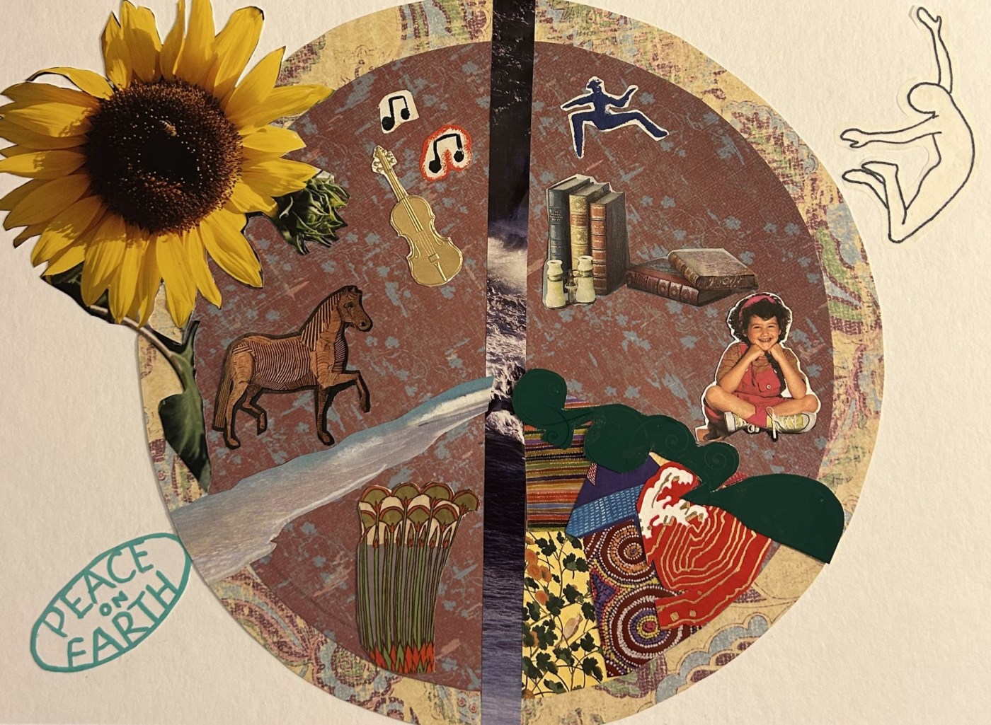 Robin Meader created a “Peace on Earth” collage depicting what humanity should enjoy in a peaceful world, such as abundant food and water.