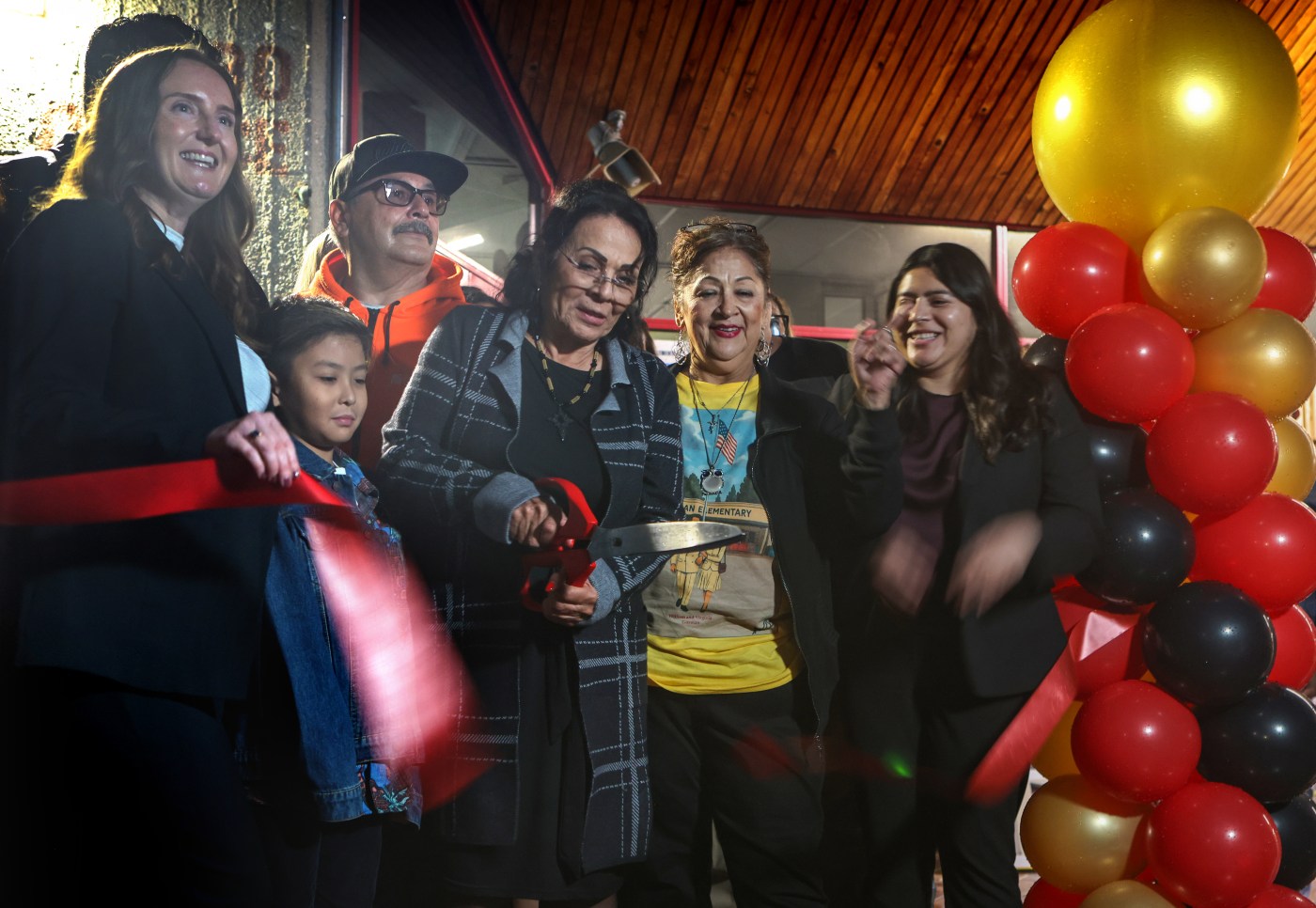 Beverly Guzman, middle, cuts the ribbon during the Santa Ana Unified School District dedication ceremony, renaming Fremont Elementary School as Virginia and William Guzman Elementary School. The event was held on Thursday January 22, 2026.