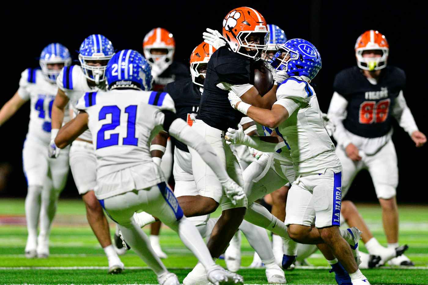 Faced with an uphill climb early, the Tigers sprung to life when Jordan Bernard caught a short pass, spun out of the grasp of one defender and juked past another for a 29-yard gain. Darting runs by Jomini Ransom advanced the ball to the La Habra 13, but quarterback Josue Estrada’s fourth-down pass sailed over Daishaun Davis out of the end zone.