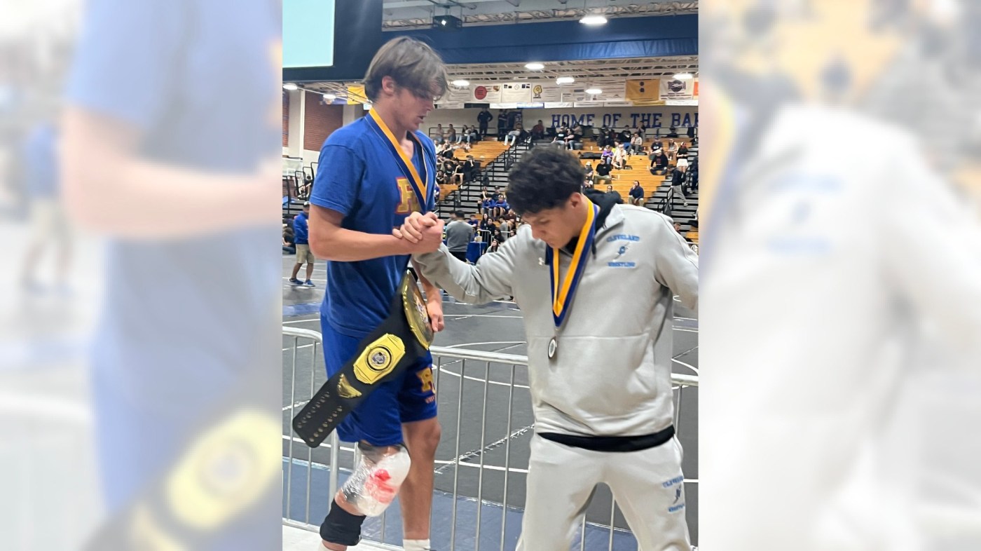 Garvey’s right knee was in a brace for Saturday’s final day of the prestigious two-day tournament. He needed an injury timeout during his 11-6 decision victory over Ames-Michael Hoevker of Granite Hills in the finals. Trainers worked on his knee and lower right leg until Garvey was able to resume wrestling with only seven seconds left in the injury timeout.