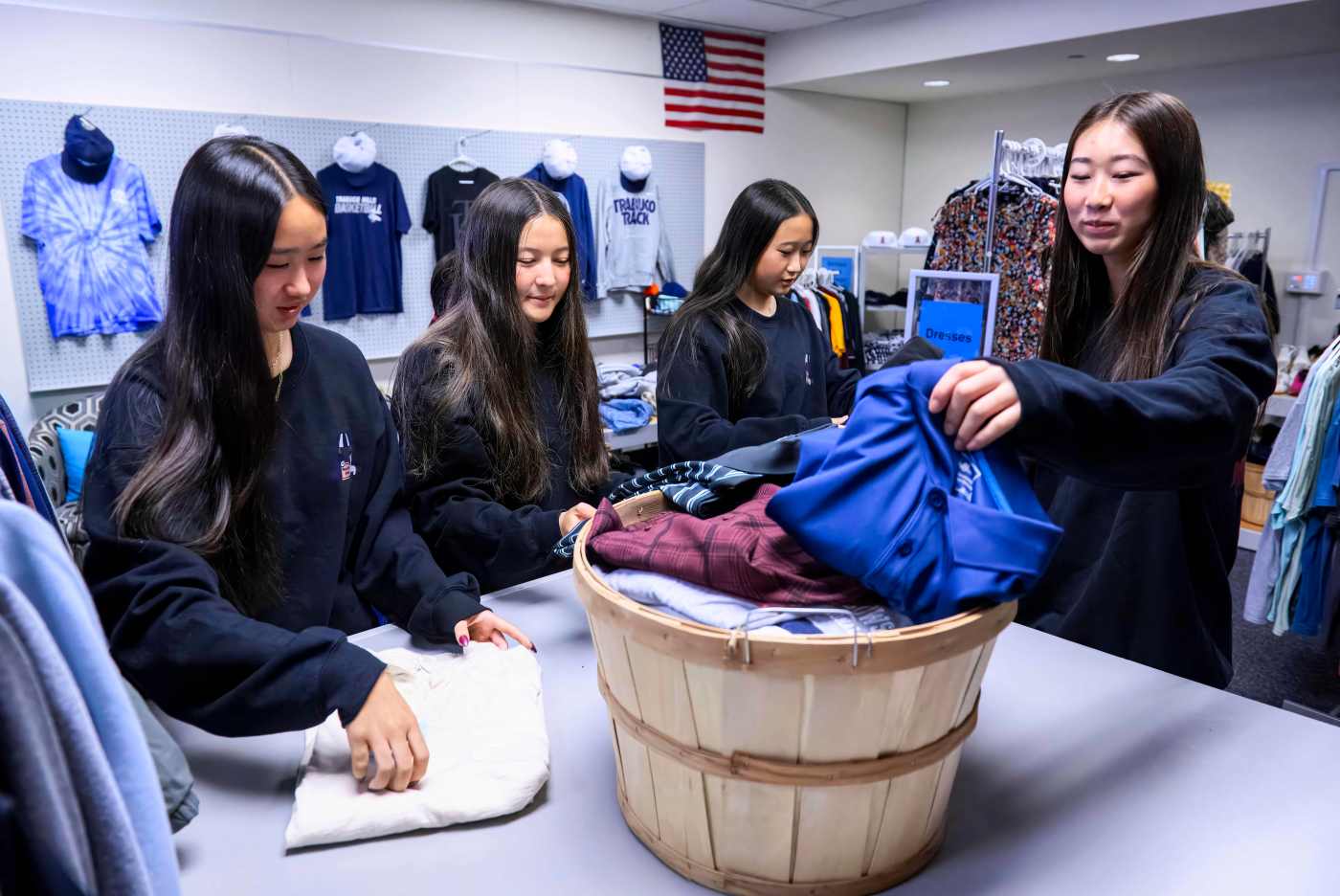 She shares that mindset with her twin sister, Shelby Kwon, and their friends and classmates, Sofia Kim, 17, and Chloe Park, 17, who together have undertaken a special project to create a thrift store at their high school.